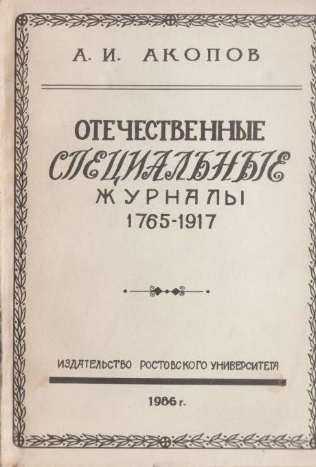 Отечественные специальные журналы 1765-1917