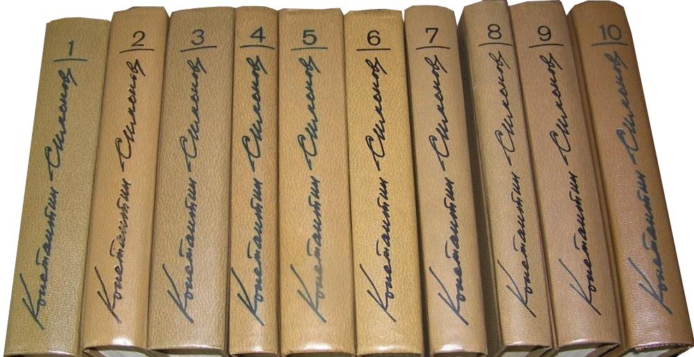 Цена за комплект. Содержание томов: Том 1 - Стихотворения. Поэмы. Вольные переводы. Том 2 - Дни и ночи. Повесть. Рассказы 1943-1945. Пьесы 1940-1945. Том 3 - Пьесы 1946-1961. Дым Отечества. Повесть. Товарищи по оружию. Роман. Случай с Полыниным. Повесть. Том 4 - Живые и мертвые. Роман в трех книгах. Книга первая: Живые и мертвые. Том 5 - Солдатами не рождаются. Том 6 - Последнее лето. Том 7 - Так называемая личная жизнь (Из записок Лопатина): Четыре шага. Двадцать дней без войны. Мы не увидимся с тобой. Том 8 - Разные дни войны. (Дневник писателя): 1941 год. Том 9 - Разные дни войны: 1942 год. 1943 год. 1944 год. 1945 год. Том 10 - Далеко на Востоке (Халхин-Гольские записки). Япония-46. Воспоминания.